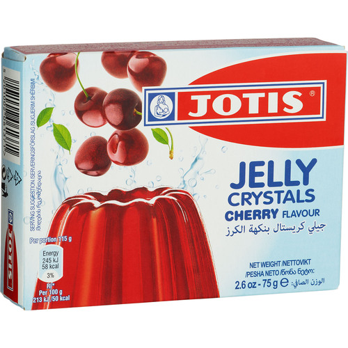 Fånga smaken av sötsyrliga körsbär i en klar, skimrande gelé från Jotis. Den här fruktiga favoriten ger din dessert en fyllig smak och vacker färg, perfekt till fest eller som ett friskt avslut på middagen.